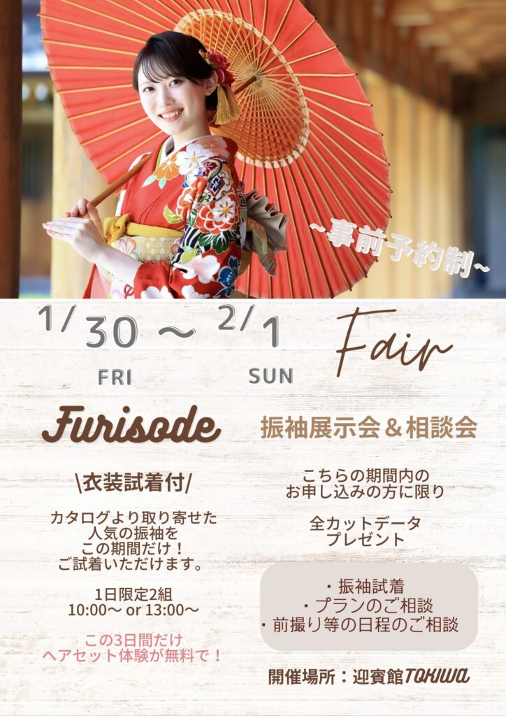 1月30日・31日・2月1日三日間限定!振袖展示会開催のお知らせ♪